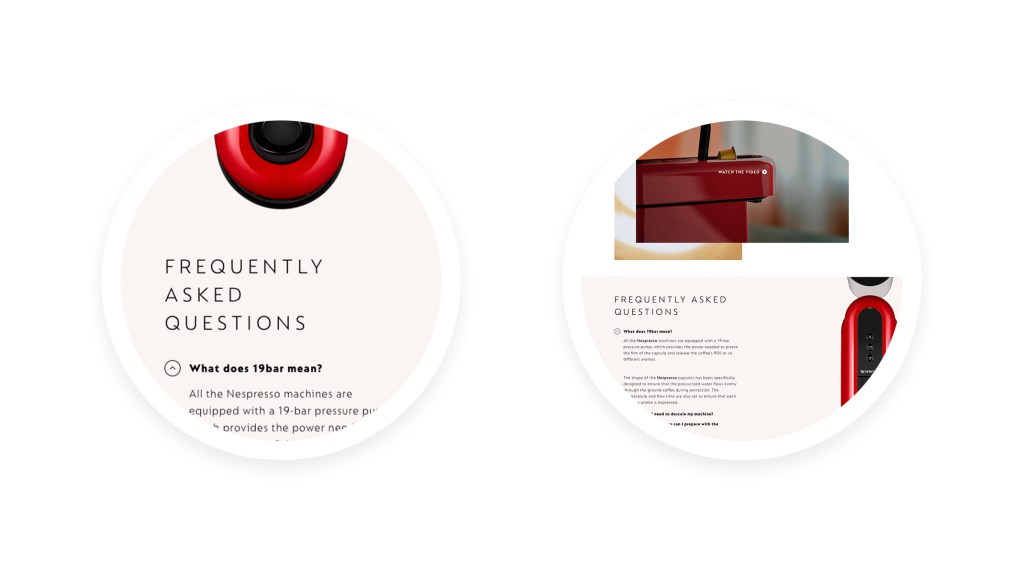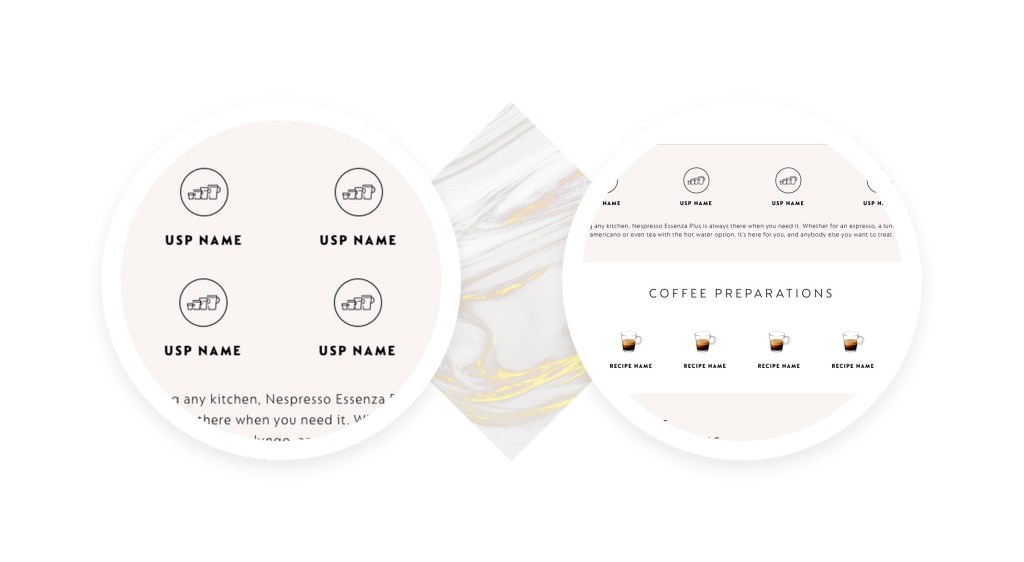 Then we’d find the “what” capsule, what are the users going to get if they decide to have this product; in this scenario, we’re showing them which coffee extractions to spect from the machine featured.